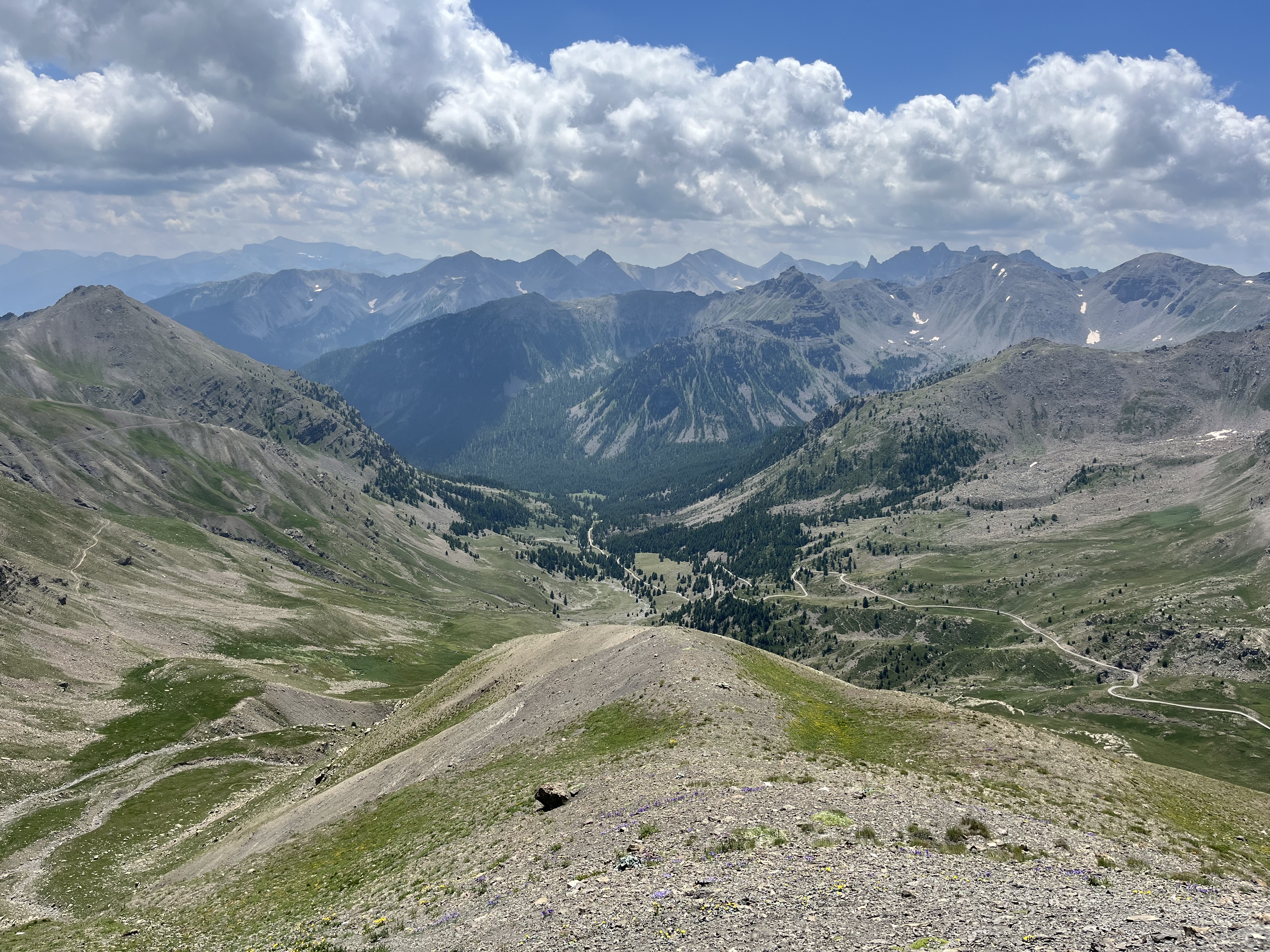 Behoorlijk uitdagend gravel terrein, met vooral een hele mooie vallei van Moutiere. Onderstaande foto laat van de Bonette de gravelwegen ernaartoe zien.