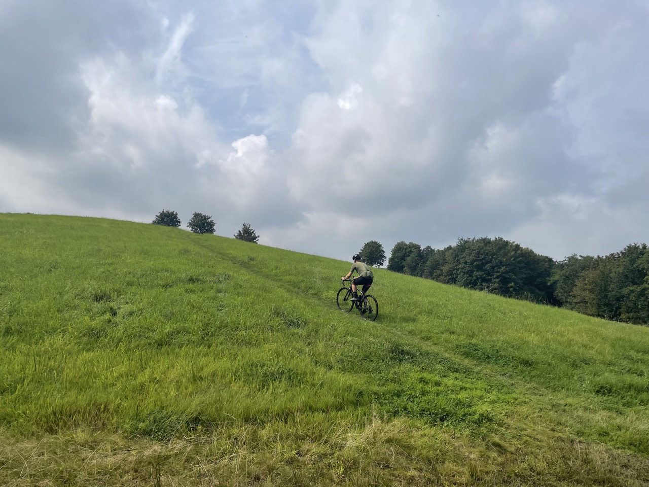 - Let tijdens de klimmetjes en vooral afdalingen goed op erosiegeulen en greppels