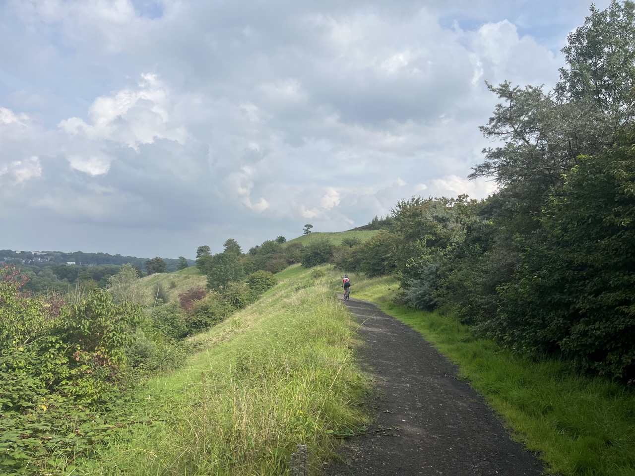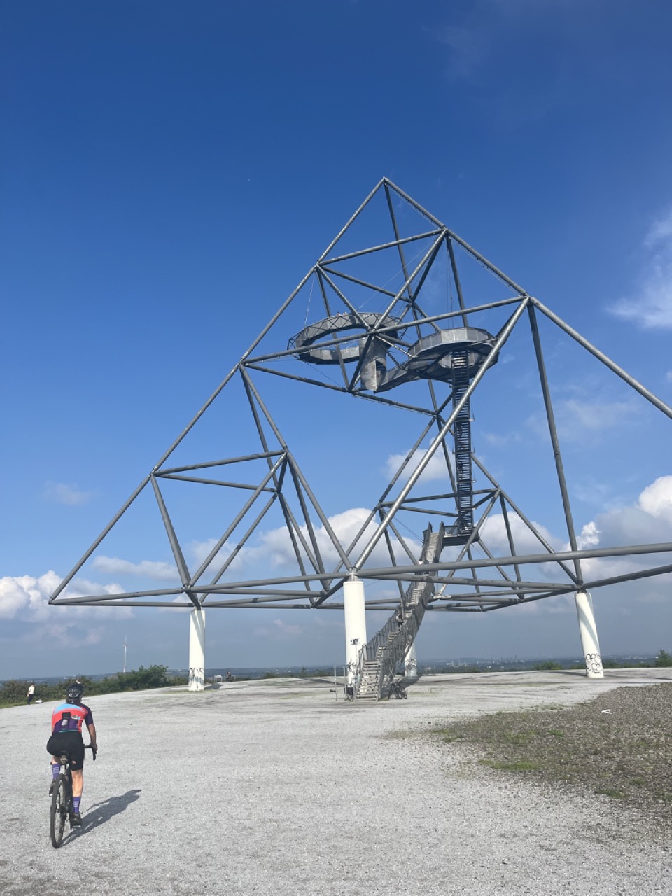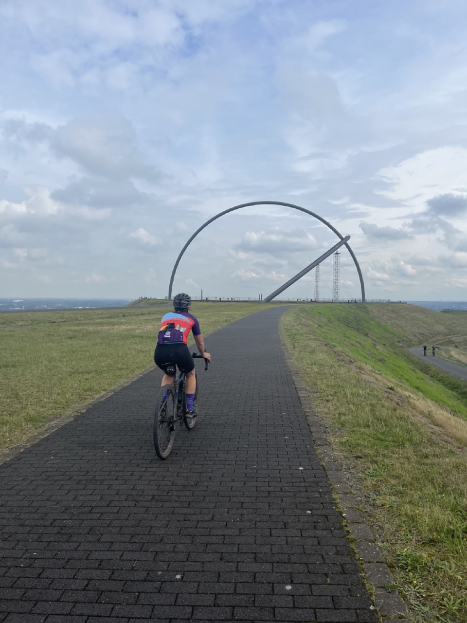 Met een beetje eigen puzzelwerk besloten voor de lange route van Erwin te gaan. Vanaf de start meteen verrassend veel groen en heerlijke makkelijk grind fietspaden, maar ook aardig wat asfalt. Vanwege de regenval de voorafgaande dagen was het bij tijd en wijle flink modderig en vooral de eerst Halde (afvalberg) was daardoor erg uitdagend geworden. De combi van leuke klimmetje van max 1 a 1.5km, bijzondere uitzichten en oud industrieel erfgoed geven deze tocht wel iets speciaals. Uiteraard is er ook voldoende lelijks, maar ook juist verrassend mooie stadjes (vakwerk in Herten bijvoorbeeld).