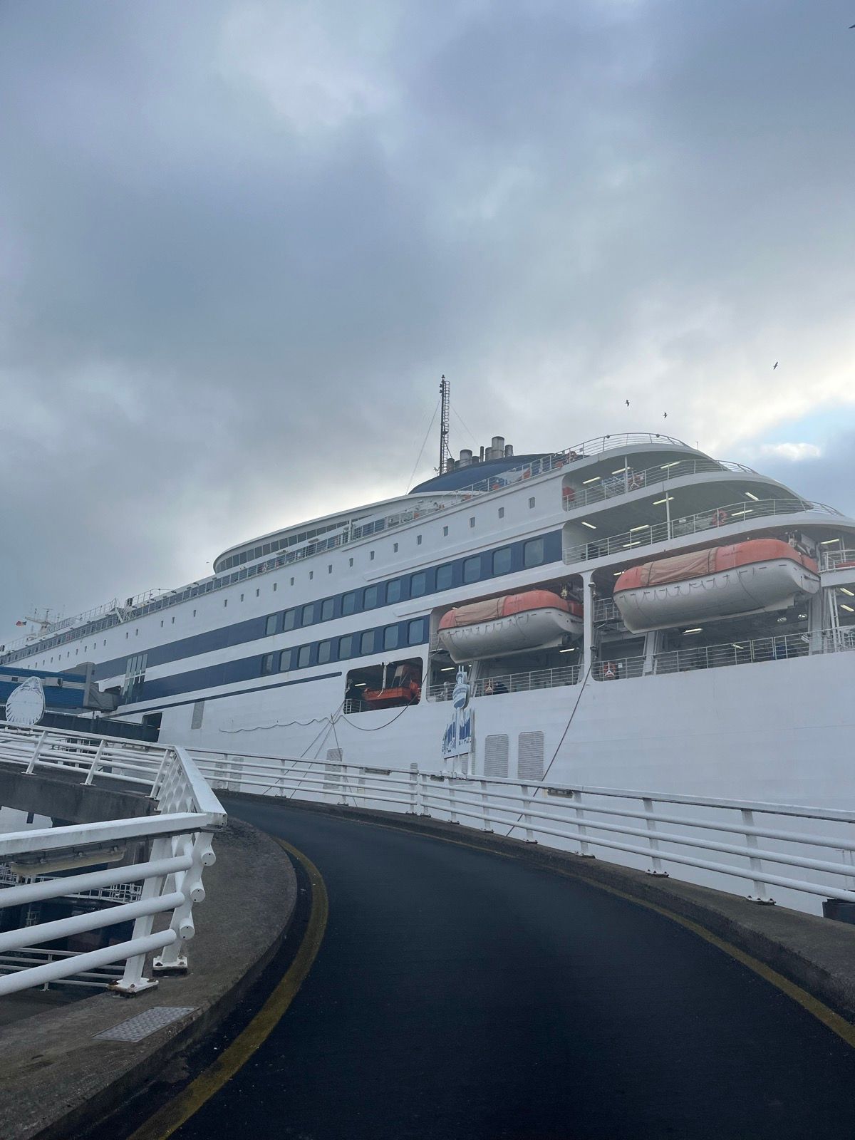 Bij Europoort wachtte de boot. Met je fiets langs de douane en t gigantische scheepsruim infietsen, da's toch best bijzonder.