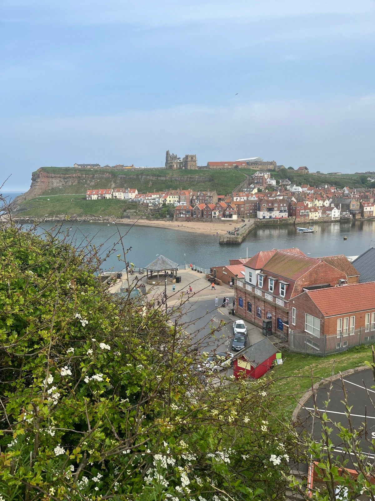 Whitby verdient een eigen vermelding. De abdijruïne boven de stad, bereikbaar via een lange trap geeft het plaatsje iets theatraals. We bezoeken de abdij en ontdekken dat er een punkfestival aan de gang is. Buiten, in de zon, met een pint, omringd door klassiek Engelse punkers met zilveren haar, leren jassen, tattoos. Het is het soort sfeertje dat je niet kunt plannen.
